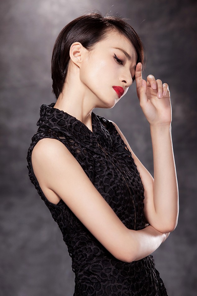 冯文娟面容沉静,一抹红唇成为整个画面的焦点,完美诠释了何为复古摩登