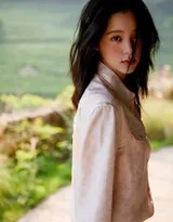 环境成为这组作品中不可或缺的“共演者”。斑驳的木门、素雅的砖墙、郁郁葱葱的庭院绿植,这些充满岁月感和生命力的元素,与欧阳娜娜自然的状态相得益彰。摄影师巧妙运用自然光线,让每一帧画面都弥漫着夏秋之交特有的柔和光感与透明空气,共同编织出一个让人心生向往的避世桃源。这种对自然与场景的极致利用,与她此前那些令人印象深刻的外景拍摄一脉相承。